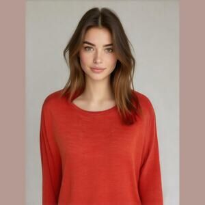 J Crew Orange Knit Cotton Blend Scoop Neck Lightweight Pullover Sweater M