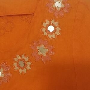 🦋J Crew Orange Linen Tunic - 3/4 sleeves - Size 0