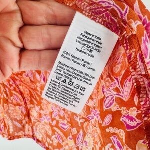 J. Crew Orange Painted Block Print Long Sleeve Ramie Tunic Top Size S