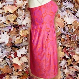 J. Crew Orange & Purple Medallion Silk Blend Strapless ‘Ella’ Dress Size 2