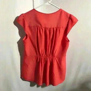 This is a pretty orange top. It buttons half way down the front. It has elastic in the back where the top would hit your waist. B-5