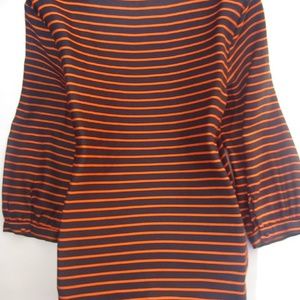 J Crew Orange/Blue Striped 3/4 Sleeves Blouse Sz L