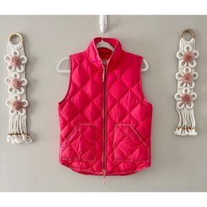 J Crew Outdoor Down Vest Size Small Full Zip Hot Pink Quilted Puffer