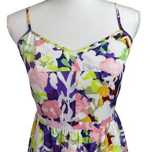 J Crew Outlet Seaside Cami Dress Size 4 White Purple Abstract Floral Casual
