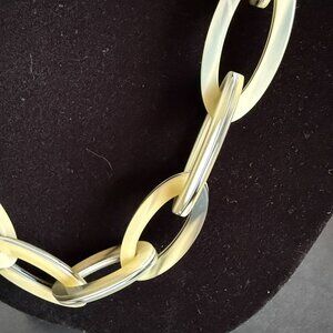 J Crew Oval Link Acrylic Chain Necklace With Ribbon Tie Closure Adjustable