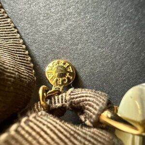 This J Crew necklace exudes a tasteful sophistication through its oval acrylic links, paired with a soft ribbon tie closure. Its lightweight design ensures comfort while maintaining a statement-worthy presence. Easily adjustable with the ribbon, it offers versatility for styling and complements various ensembles effortlessly.