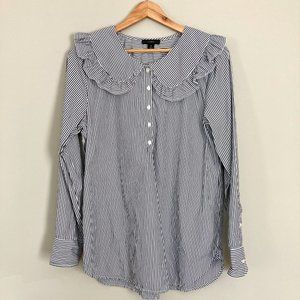 J Crew Oversized Ruffle-collar Shirt in Stripe, Size 6