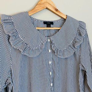 J Crew oversized ruffle-collar shirt in stripe, size 6