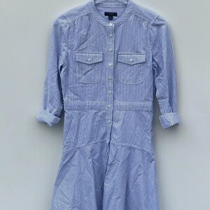 J. Crew Oxford Blue Striped Cotton Shirt Dress Womens Size 0 (618)