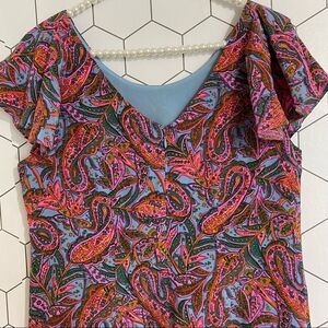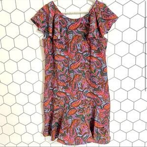 J. Crew Paisley Print Neon Silk Ruffle Hem Flutter Sleeve Dress SIZE 6