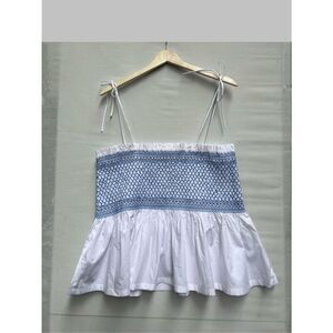 It comes with intricate embroidered details across the top, thin tie-shoulder straps and a fun, flared hem. Plus, it's crafted from our crisp, customer-favorite cotton poplin that's lightweight and easy, with just a touch of structure.