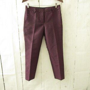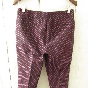 J Crew Pants 0 Black Pink Dot Print Ankle Crop Flat Front