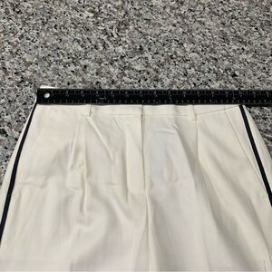 J Crew Women's Collection Contrast Trim Tuxedo Wide Leg Essential Pants in Wool Blend in Ivory Size 2. A luxe, menswear-inspired style, crafted from softly structured wool. It comes with a wide-leg and front pleats.