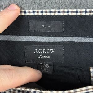 J Crew Pants Mens 32x30 Brown Check Ludlow Slim Fit Slacks Somelos Linen Blend
