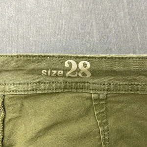 Description: J. Crew skinny, tapered leg olive chinos; square pockets