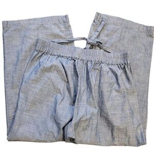 J. Crew Pants Women's 12 Blue Chambray Tie Waist Straight Leg Cotton