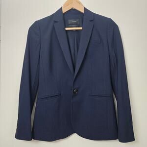 J. Crew Parke Blazer Italian Stretch Wool Size 0 Navy Tollegno 1900 Black Label