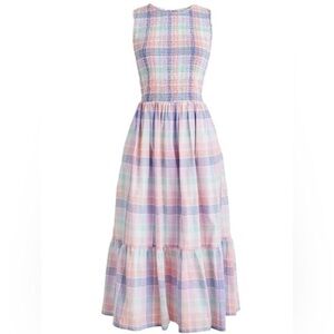 J. Crew Pastel Plaid Smocked Midi Dress size S