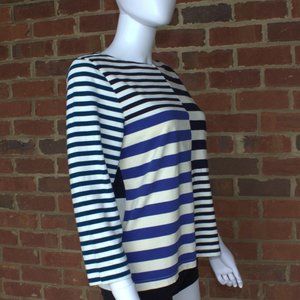 J. Crew | Patchwork Striped 3/4 Sleeve Shirt | Blue-White-Cream | F1456 | Size M