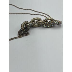 J. Crew Pave AB Rhinestone Crystal Oval Link Double Strand Necklace