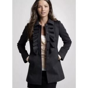 J. Crew Pea Coat Jacket 100% Wool Ruffle Button Front Black Womens Size 4