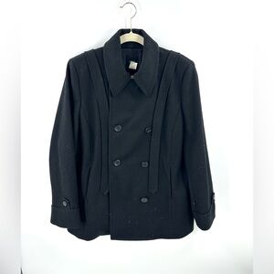 J Crew Pea Coat Womens 14 Wool Blend Double Breasted Preppy Classic Black