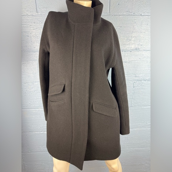 J Crew Pea Coat Women’s Italian Stadium Cloth, Wool, Nello Gori Black Size 6