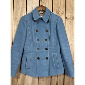 J Crew Pea Coat Size Medium Women Camel Beige Wool Lined Double Breasted Pockets