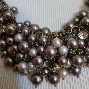 J. Crew cluster necklace of silver and cream pearls with a sprinkling of clear rhinestones. Dark gold-tone link chain. Necklace measures 22" long but can be worn shorter. Marked J. Crew. Very good pre-loved condition.
