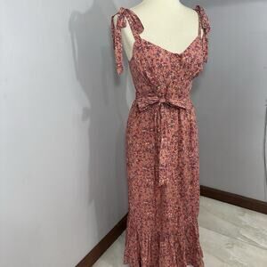 J Crew Peasant Cottagecore Ditsy Floral Maxi Long Dress Pink Sweetheart Coquette