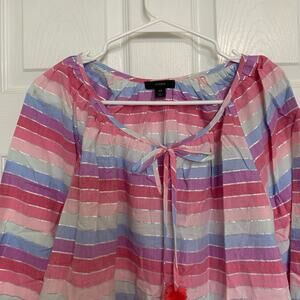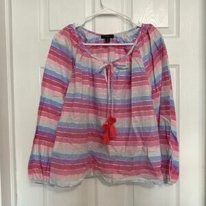 J. Crew Peasant top in metallic pastel rainbow stripe XS