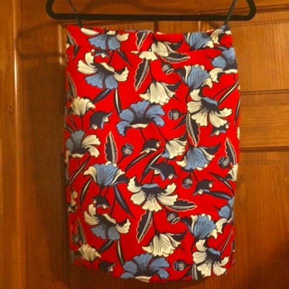 J Crew Pencil Skirt Size 0: Red/Blue Floral