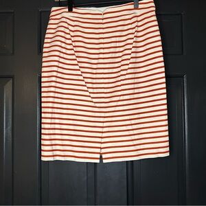 J. Crew Pencil Skirt Size 4 Linen Blend Red White Striped Lined Back Slit(g