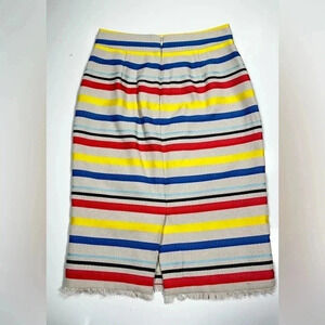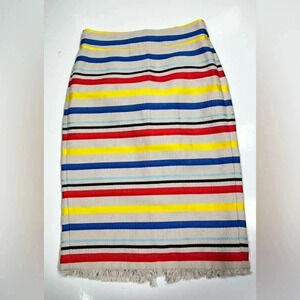 J Crew Pencil Skirt Tan Multicolor Striped Cotton Blend Skirt Size 00 Raw Hem