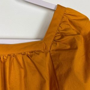 J Crew Penny Top, square neck peasant blouse in a rich golden amber color that is perfect for Fall!