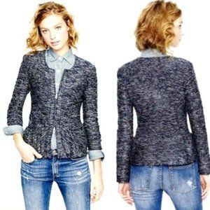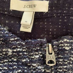 J Crew Peplum Knit Jacket Women's XS White Blue Boucle Tweed Double zip Blazer