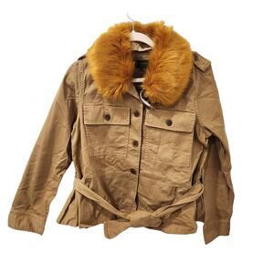 J. Crew Peplum chino jacket with faux fur collar size medium