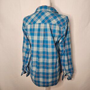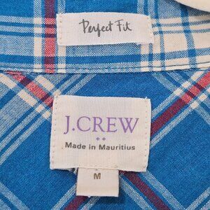 J. Crew Perfect Fit Plaid 1/4 Button Shirt Medium Cotton Blue/Red/White