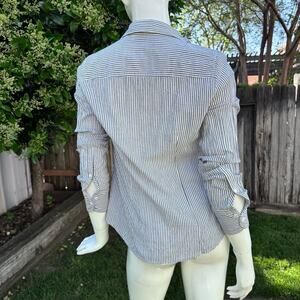 J. Crew Perfect Fit Striped Bling Poplin Shirt Grey White Women's Size 4