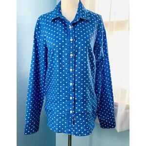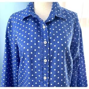 Blue and white polka dot shirt from J Crew. 100% linen.