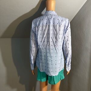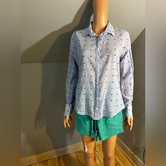 J. Crew Perfect Shirt Blue Eyelet Embroidered 100% Cotton Button Down EUC 10