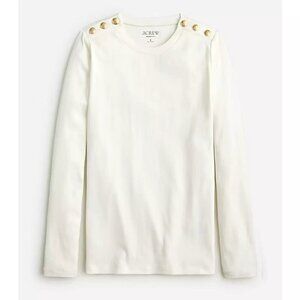 J. Crew Perfect-Fit Long-Sleeve Crewneck T-Shirt With Buttons in Ivory XXSmall