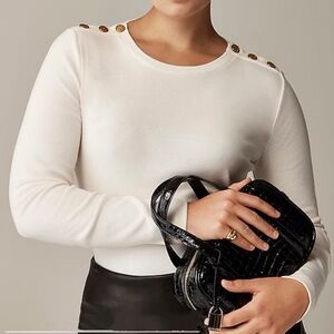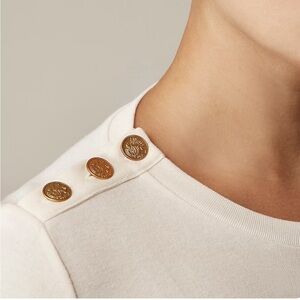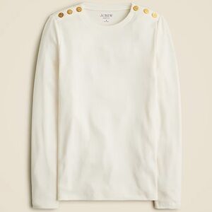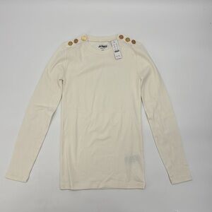 J Crew Perfect-fit long-sleeve crewneck T-shirt lion buttons sze XXS Ivory CC980