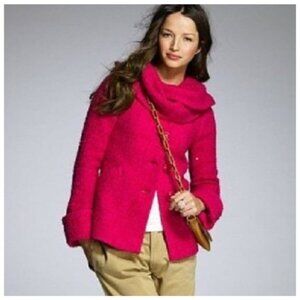 J. Crew Petite Coat Pink Boucle Scarf Wrap Jacket 2P Fuchsia Wool Blend