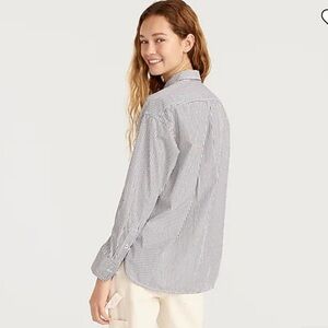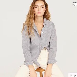 J Crew Petite relaxed-fit crisp cotton poplin shirt in navy stripe item AW721