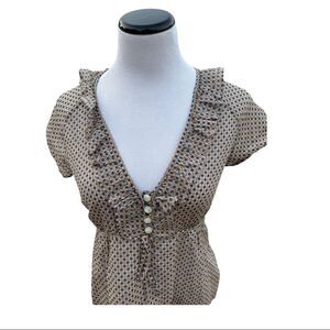 J Crew Cotton Pineapple Ruffle V-Neck Top Three Button Blouse Women’s Size 2