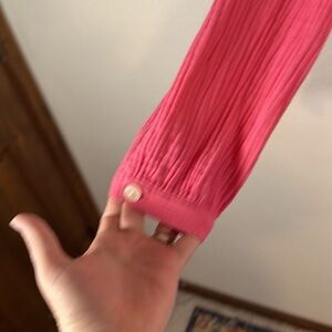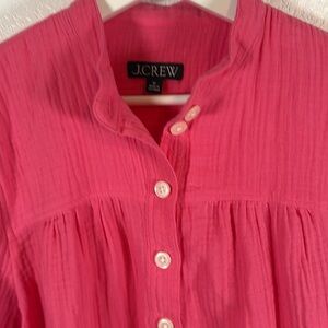 J. Crew Pink 1/2 Button Gauzy Cotton Pop Over Blouse Size Medium