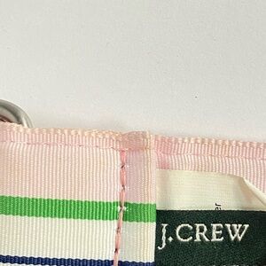 Chic pink belt with vibrant green and blue stripes. Features a sleek silver buckle.