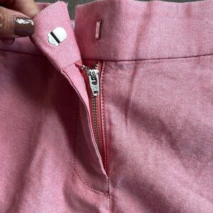 These J. Crew Bermuda shorts in a soft pink hue offer a timeless style with their structured cotton fabric and mid-thigh length. Perfect for warm weather, they provide a versatile and chic option for casual outings.