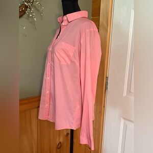 Stylish pink button down shirt. Features a classic collar and front pocket. Perfect for casual or office wear.